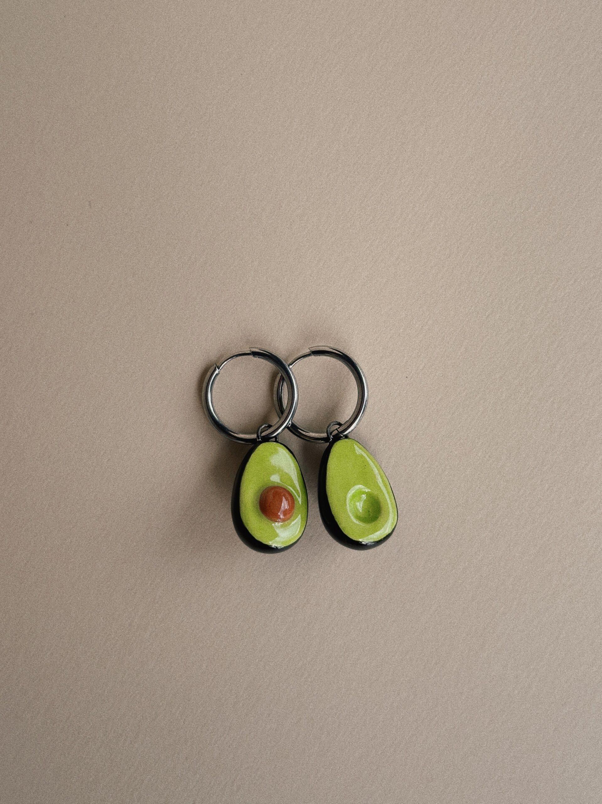 Aretes de aguacate partido a la mitad, hechos y pintados a mano 🥑
