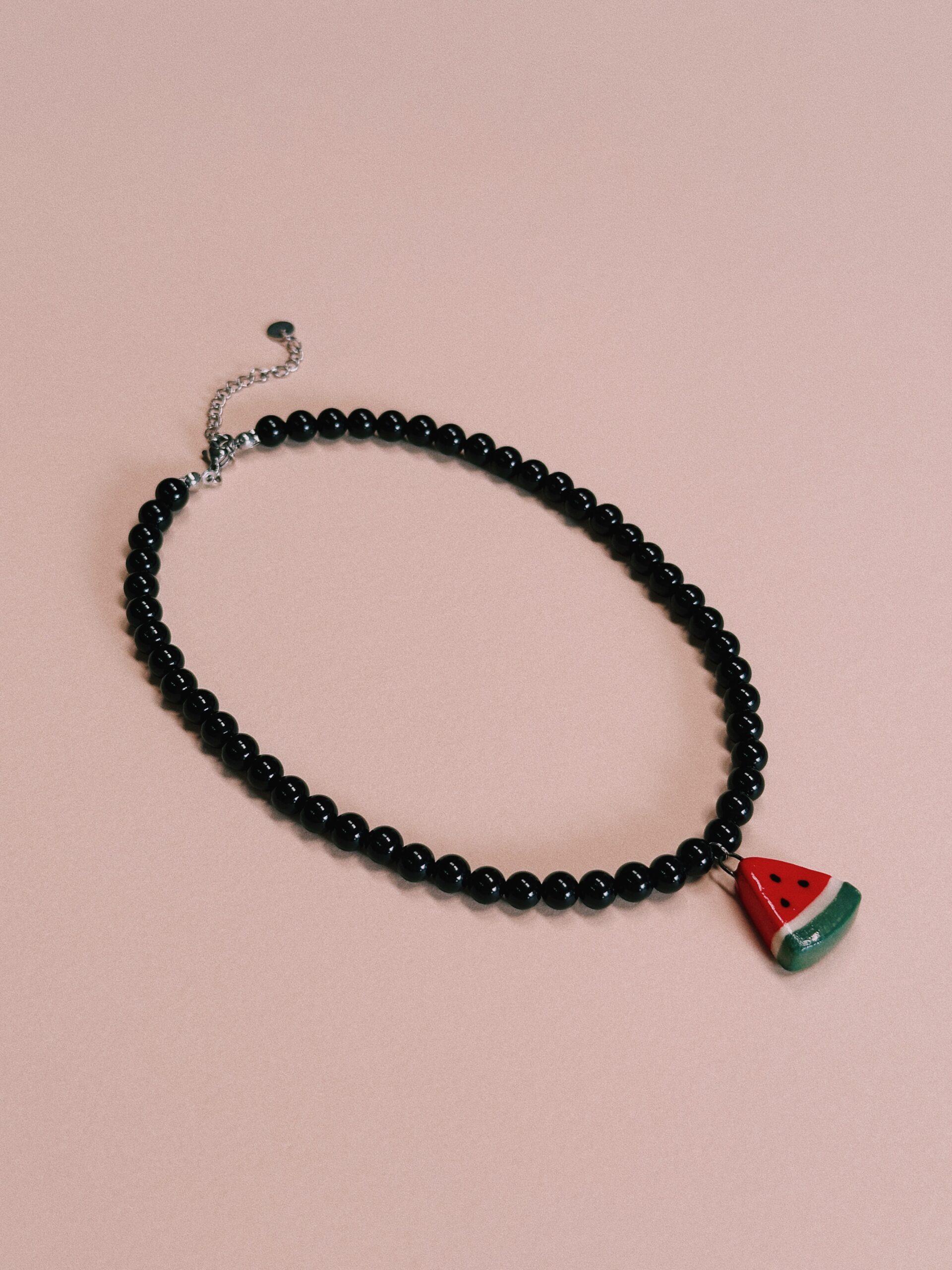 Collar de sandía, dije hecho a mano. Con cierres plateados.